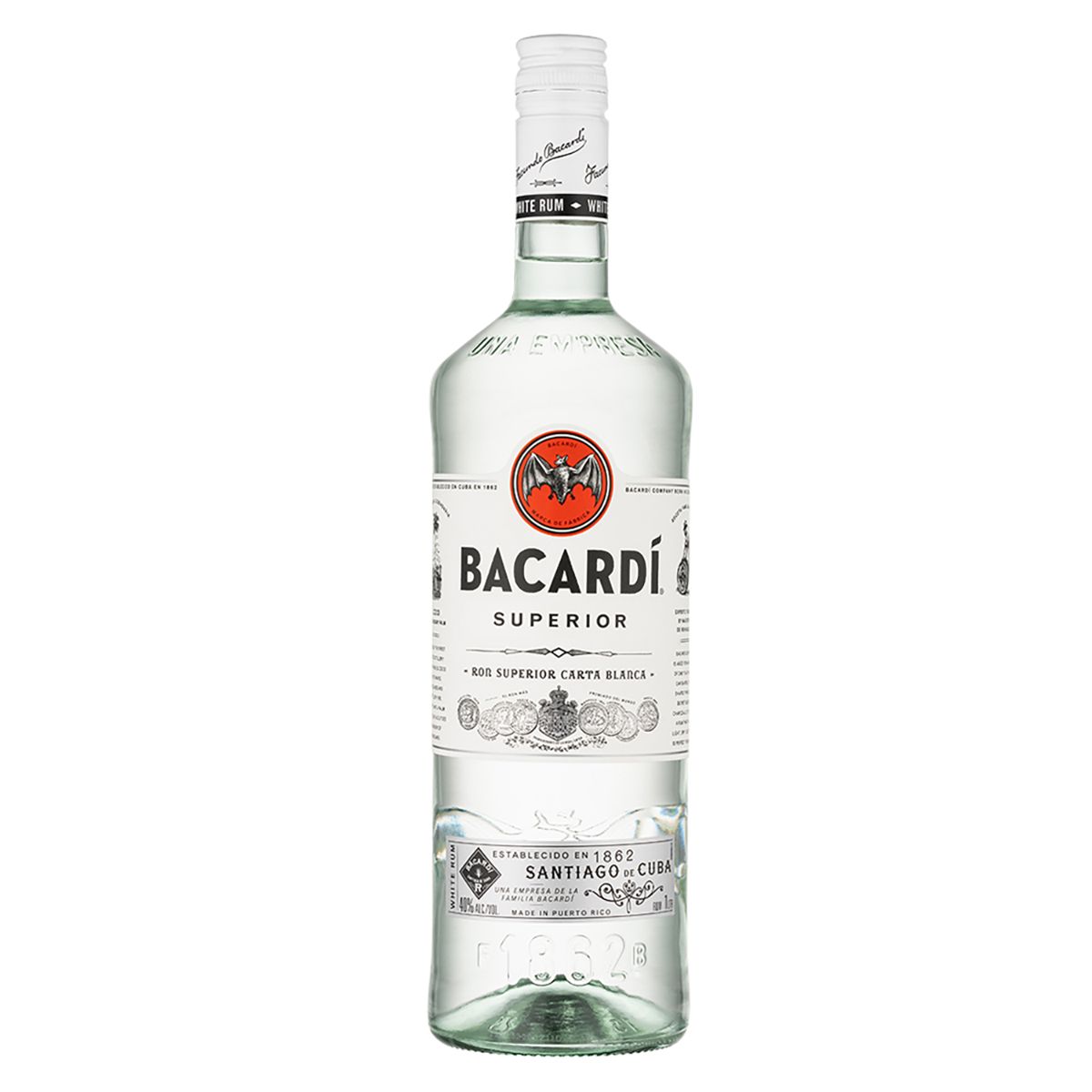 BACARDÍ Carta Blanca is a light, aromatic white rum with subtle floral and fruity notes. Smooth and versatile, it’s perfect for mixing into classic cocktails like the Mojito or Daiquiri, delivering a clean, balanced flavour every time. 37.5% ABV.