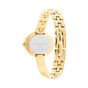 Embodying graceful femininity, this elegantly sculpted watch features a unique bangled and linked bracelet. The sizeable design is complemented by a vertically brushed, understated dial, creating a perfect balance of elegance. Includes a two-year international warranty.