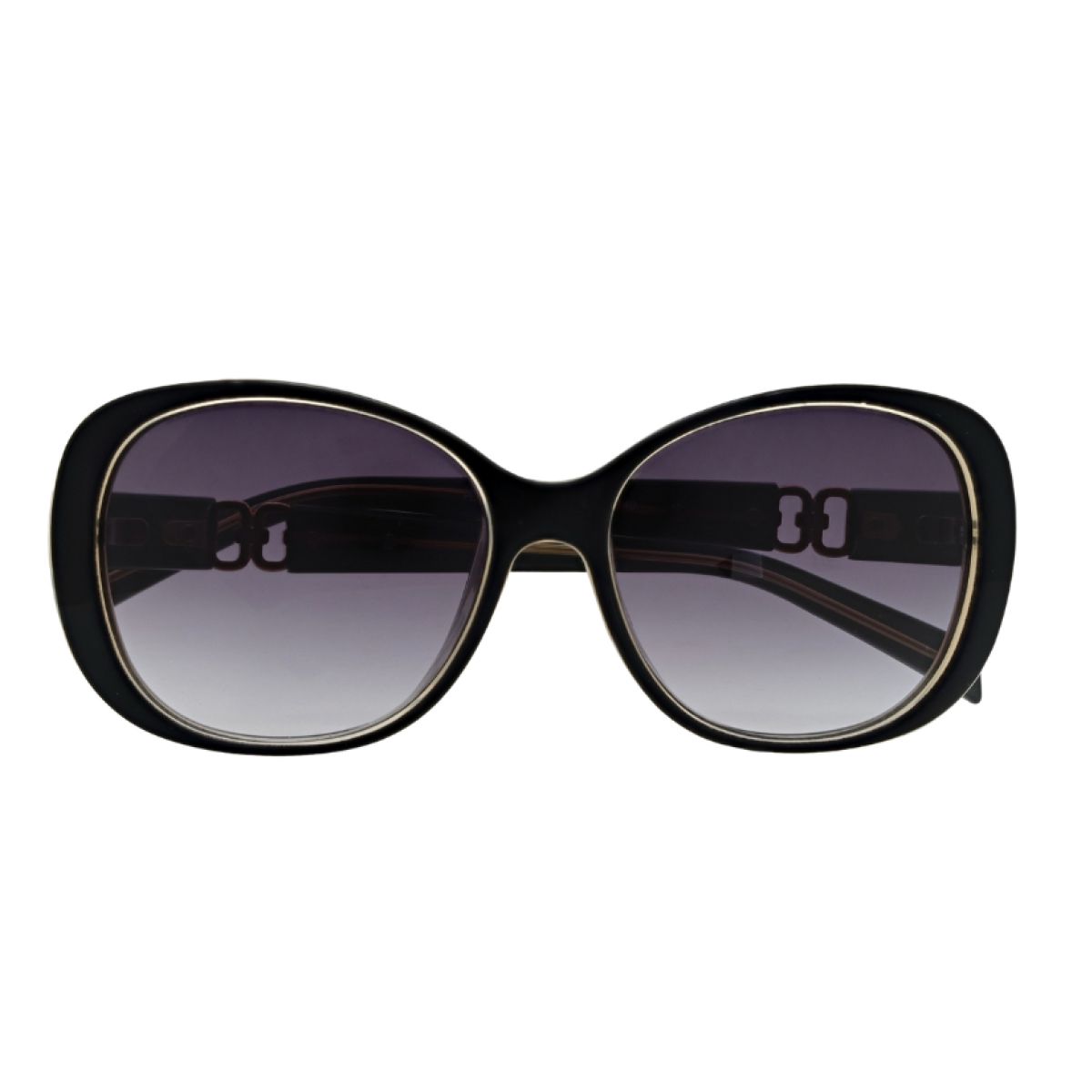 Karen Millen presents this glamorous, easy-to-wear sunglass in classic black laminated onto crystal nude. The softer frame flatters all complexions and suits every face shape—combining timeless style with comfortable, flattering wear. This sunglass is elevated further by the beautiful, branded gold tone hardware on each temple and the filter category 3 lenses are a sophisticated graduated grey.