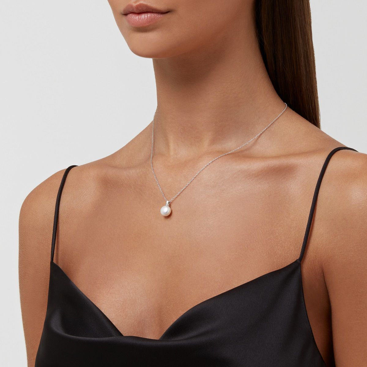 This elegant necklace features a lustrous button-style freshwater pearl pendant, approximately 10mm in diameter, exuding timeless sophistication. Complimenting the necklace are matching stud earrings, both crafted with the same radiant Freshwater Pearls. Designed to coordinate seamlessly, this set ensures a refined and cohesive look. Made from high-quality 925 Sterling Silver, it offers a brilliant shine that pairs perfectly with any outfit. Versatile for both casual and formal occasions, this set is a must-have accessory, destined to become a cherished piece in your jewellery collection for years to come.