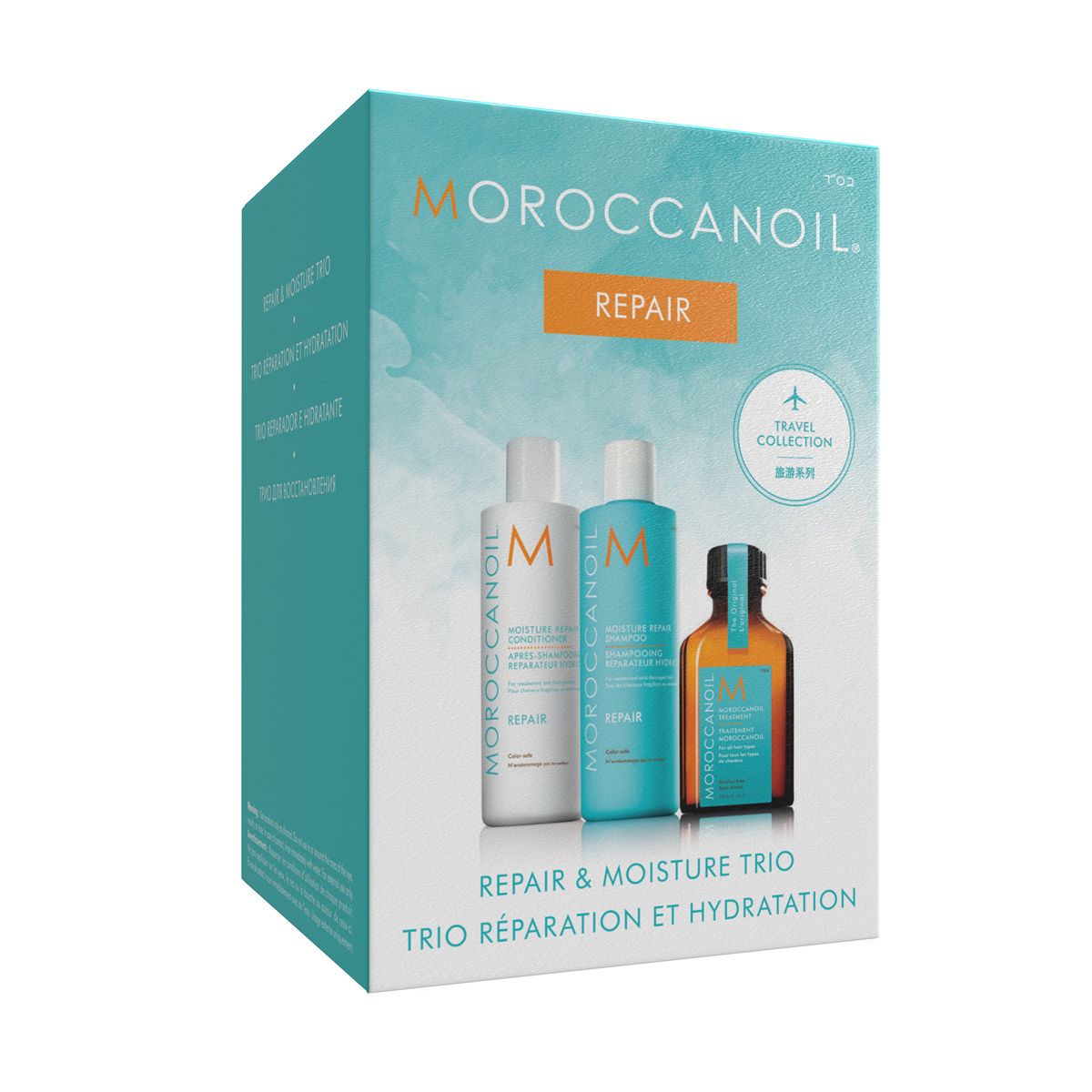 The Moroccanoil Essential Set for Damaged Hair offers a complete care routine to restore strength, moisture, and shine. This set includes the best-selling Moisture Repair Shampoo and Conditioner, formulated with nourishing ingredients to gently cleanse and repair weakened strands. Infused with argan oil and reconstructive proteins, they help improve elasticity and restore smoothness. The set is completed by the iconic Moroccanoil Treatment, a multitasking formula that conditions, styles, and adds luminous shine while reducing drying time. Together, these essentials target damage at every step—leaving hair visibly healthier, softer, and more manageable. Perfect for revitalizing stressed or over-processed hair.