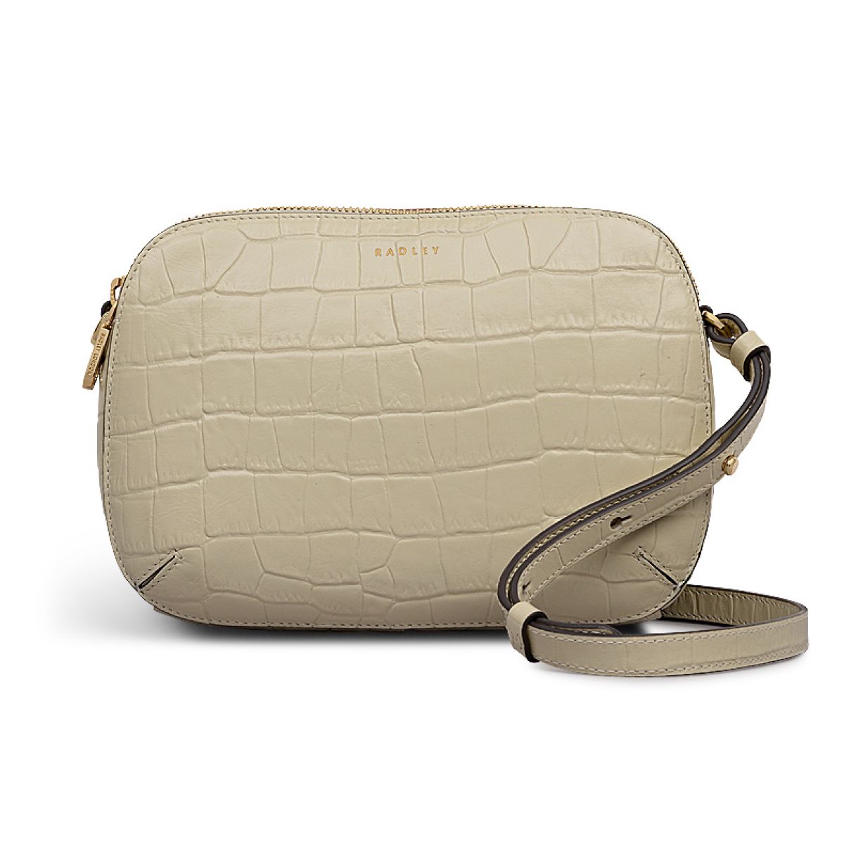 The perfect accessory to go with a bestselling collection. This is the Dukes Place Snow Faux Croc bag in a medium zip-around shape. A firm favourite from Radley London. From our iconic Dukes Place family, the zip-top cross body bag is one of our bestselling styles. Now crafted in glossy, textured croc-embossed leather with the signature three compartments that will always keep your essentials organised. Includes adjustable cross body strap, three compartments, two zipped sections with branded metal pullers, central slip section with magnetic fastenin, bonded faux suede and canvas linings, interior pockets, and slip back pocket. Comes with a dust bag.