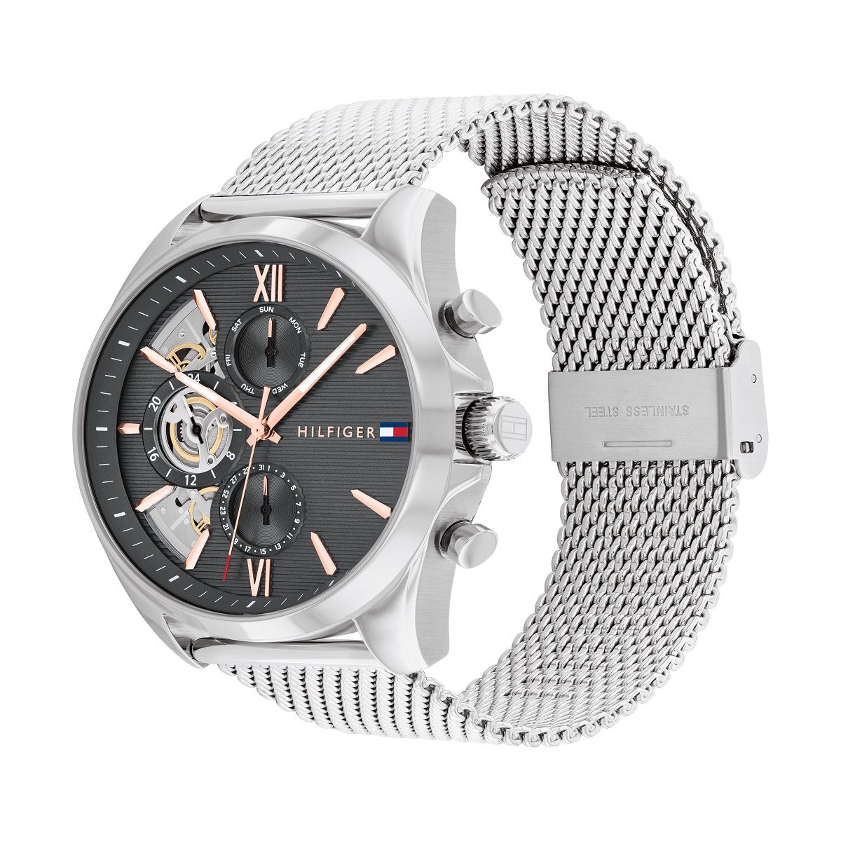 Introducing the Tommy Hilfiger men’s watch—a modern classic symbolising polished refinement, craftsmanship, and enduring style. With a multifunctional design, it features weekday sub-eyes at 12 o’clock, 24-hour sub-eyes at 9 o’clock, and a date indicator at 6 o’clock. Case size: 44mm. Includes a two-year international warranty. 3 ATM water resistance.