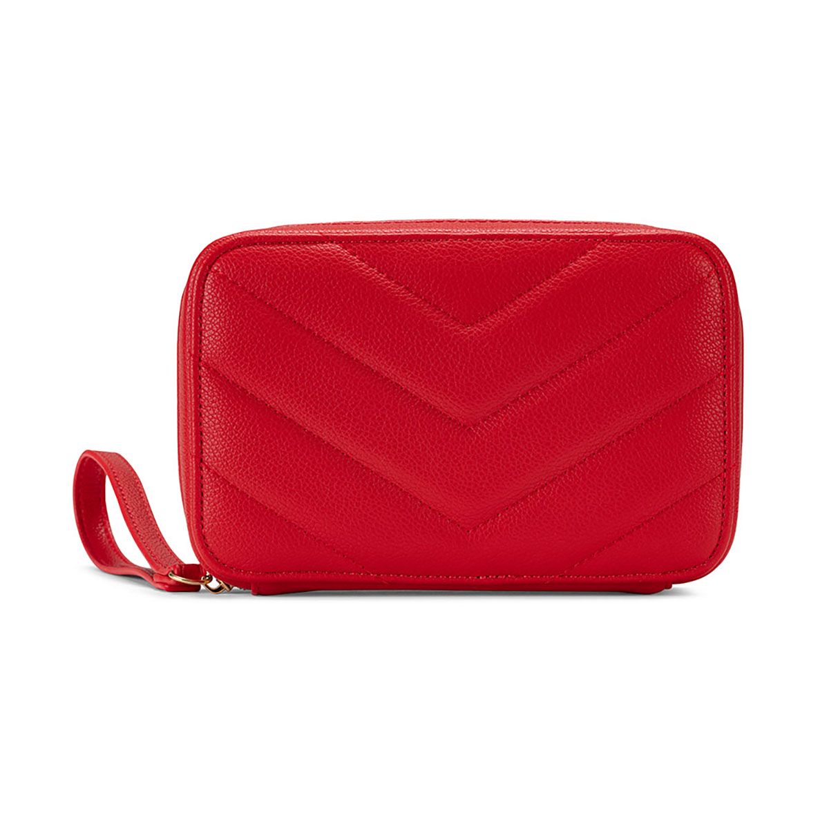 Created in partnership with British designer Fenella Smith, this chic travel pouch keeps your inflight essentials neatly organised and runway ready. Crafted from vegan recycled PU leather with a luxurious cream velvet lining, it features a zip pocket and jewellery strap to secure your earrings and other treasures. Perfectly sized for inflight convenience, it combines style, practicality, and sustainability in one elegant accessory.
